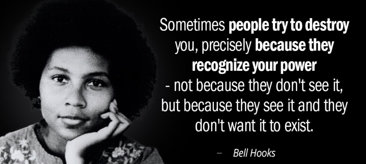 ‘Dominator culture has tried to keep us all afraid, to make us choose safety instead of risk, sameness instead of diversity. Moving through that fear, finding out what connects us, revelling in our differences; this is the process that brings us closer, that gives us a world of shared values, of meaningful community’ Bell Hooks